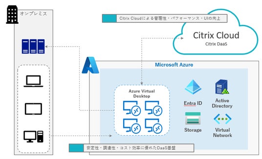 従来利用していたVDI基盤もCitrix製品を採用しており、AVDを「Citrix Cloud」※1を組み合わせて管理することでエンドユーザーにとって使い慣れたUIのままDaaSへ移行できる点
