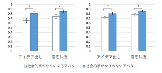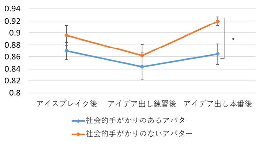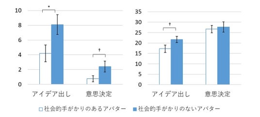 さらに、社会的影響力に着目したとき、社会的手がかりが「ない」アバターは、「ある」アバターと比較して、参加者間の社会的影響力の差がないことも分かった。