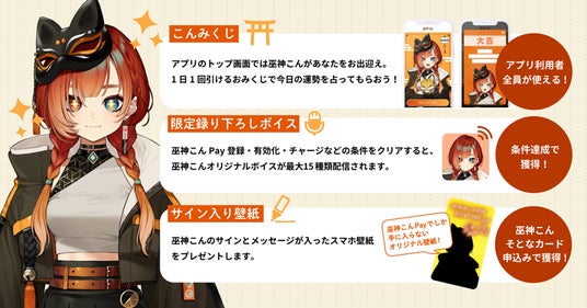 「巫神こんPay」ならではのオリジナルコンテンツや限定特典を用意しています。