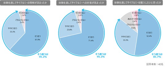 体験後のアンケートでは、95%が「Cycle.me」に対する「理解が深まった」「好意が高まった」と回答し、購入意欲も85%と高い評価を得ました。「Robo-Shop」内での没入体験とAIでのレコメンドにより、深くブランドの世界観を伝えることができました。