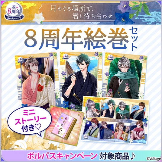 「月めぐる場所で、君と待ち合わせ」をテーマにした8周年記念ビジュアルが楽しめる絵巻セットを販売しております。