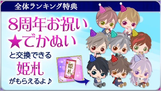 上位に輝いた忍は、描きおろし絵巻&新作物語の販売を予定しているほか、「8周年お祝い★でかぬい」などここでしか手に入らないアバターも多数登場します。