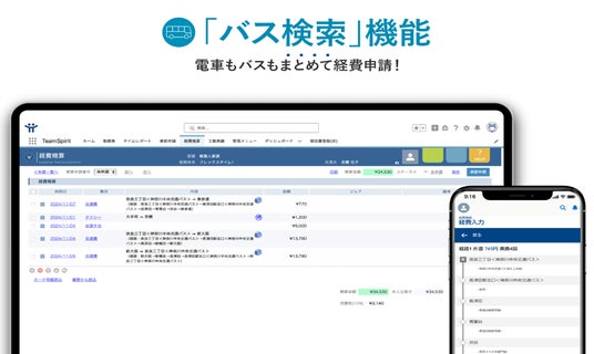 株式会社駅探(本社:東京都千代田区、代表取締役社長:金田直之、以下「当社」)は、株式会社チームスピリット(本社:東京都千代田区、代表取締役CEO:道下和良、以下「チームスピリット」)が提供するクラウドサービス「チムスピ経費」に、令和6年11月27日より「バス検索」機能のサービスの提供を開始しましたのでお知らせいたします。当社は平成27年より、チームスピリットの経費精算機能をより効率的に利用できるように「電車検索」機能のサービスを提供しておりましたが、これに加えて、「バス検索」機能を提供し、ユーザー利便性向上に貢献致します。