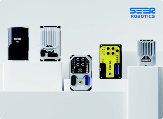SEERの主力製品であるAMR・AGF専用コントローラー(SRCシリーズ)。独自のセンサーフュージョン技術により世界トップレベルの自己位置推定信頼度・精度(最高で±5mm、±0.5°)を実現。世界で唯一AMRの安全規格(ISO 3691-4) に適合したAMR用コントローラーを提供しています。