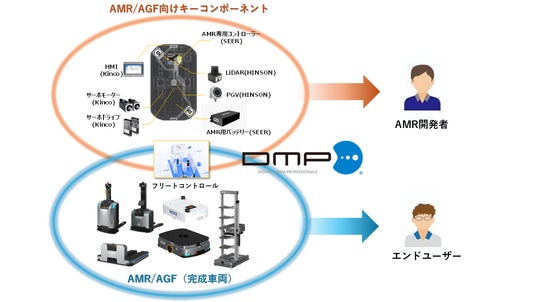 今回提携するSEER、Kinco、Hinsonはいずれも業界をリードする先進的な技術を有し、高品質かつ高機能なロボティクスおよびオートメーション製品をアジア、欧州、米国を含む全世界に販売しています。DMPはこれらの企業のAMR・AGFといったロボット本体やそのコントローラー、センサー、モーターなどロボットを構成するキーコンポーネントとソフトウェアの提供を2025年4月より開始し、日本企業の課題解決を支援します。