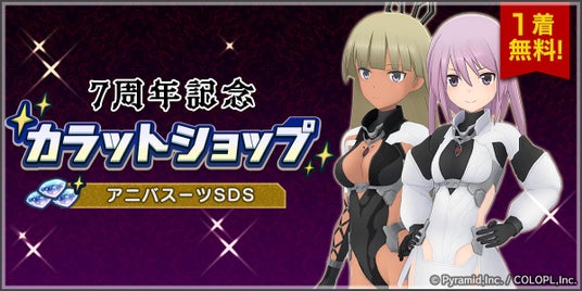 ●『カラットショップ アニバスーツSDS』開催中!7周年記念コスチューム「アニバスーツSDS」が販売中です。通常デザインを含め8種類のスタイルに変化できる「スタイルチェンジ」機能に対応しているほか、今ならお好きな1着を無料でプレゼントしておりますので、ぜひご利用ください。