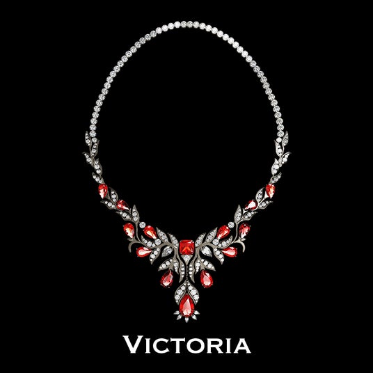 4.93カラットのGEM Qualityレッドスピネルを始め、総カラット数28.2のレッドスピネルと、190点ものダイヤモンドが散りばめられたこのネックレスは、「勝利の女神」の名に相応しい美しさと壮麗さを兼ね備えています。