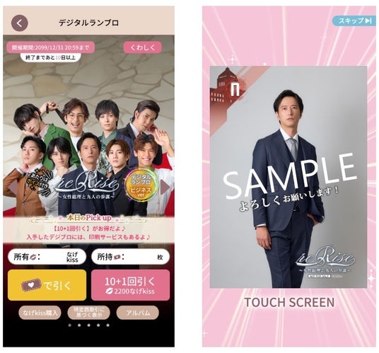 「reRise - 女性総理と九人の参謀 -」の作品配信に合わせて、デジタルブロマイドがランダムで排出される「くじサービス」を実施いたします。作品連載期間中、毎週各キャラクター毎に4種類のデジタルブロマイドを配信予定。すべてのデジタルブロマイドにキャラクターメッセージが付いており、当たりデジタルブロマイドはボイス付きとなっております。