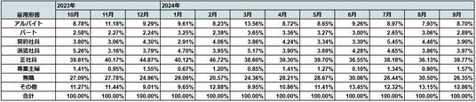 【表2:ドラピタにおける求人応募者の雇用形態推移】