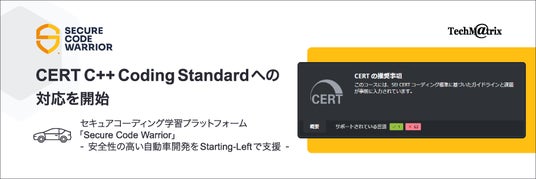 クス」)は、豪州Secure Code Warrior Pty Ltd(本社:豪州ニューサウスウェールズ州、最高経営責任者:Pieter Danhieux、以下「Secure Code Warrior 社」)が提供するセキュアコーディング学習プラットフォーム「Secure Code Warrior」について、CERT C++ Coding Standard への対応が開始されたことを発表いたします。テクマトリックスは、国内総販売代理店として、ソフトウェア開発に携わるお客様を対象に、本製品の日本国内での販売、マーケティング、ユーザーサポートなどの活動を展開してまいります。