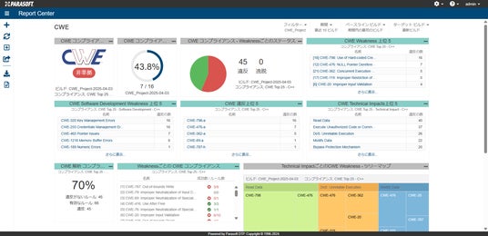 図1. Parasoft DTPにおけるCWE Top 25の準拠を確認するためのダッシュボード