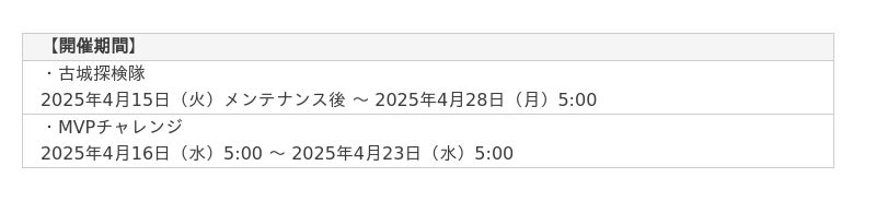 ■期間限定イベント「古城探検隊」「MVPチャレンジ」開催!