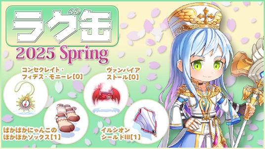 今回のラインナップには「コンセクレイト・フィデス・モニーレ[0]」、「ヴァンパイアストール[0]」、「ぱかぱかにゃんこのぽかぽかソックス[1]」、「イルシオンシールドIII[1]」といった新アイテム4種が登場。春を冠する「ラグ缶2025 Spring」をどうぞお楽しみください。