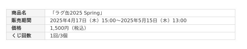 2025年4月17日(木)15:00より、「ラグ缶2025 Spring」の販売を開始いたします!
