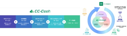 「CC-Dash」( https://xcc-dash.jp/ )は、データ活用によってお客様のDX推進を支援する当社独自のフレームワークです。DXを推進する際の各フェーズ(1.知る 2.つくる 3.集める 4.整える 5.分析する 6.活かす)における様々な課題に対し、テンプレート化と各種コンサルティングサービスをお客様に提供しています。加えてアライアンス等によってソリューションサービスのラインナップを随時追加・拡充していくことで、お客様のDX推進状況に合わせた支援策をワンストップで提供してまいります。