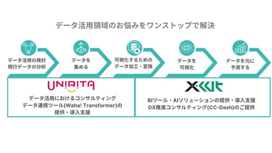 株式会社ユニリタ(本社:東京都港区、代表取締役 社長執行役員:北野 裕行、東証スタンダード市場:3800、以下 ユニリタ)は、DX推進支援フレームワーク「CC-Dash」(https://xcc-dash.jp/)を提供する株式会社クロスキャット(本社:東京都港区、代表取締役社長:山根 光則、東証プライム市場:2307、以下 クロスキャット)とデータ活用領域において両社の強みを活かし、顧客に対する一気通貫の価値を提供していくことを目的とした協業を開始しました。