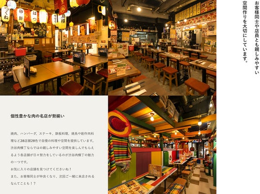 渋谷肉横丁はこれまで、28の個性豊かな店舗が集まる食のエンターテイメント空間として、多くのお客様に愛されてきました。しかし、食を取り巻く環境は常に変化しており、お客様の期待も多様化しています。そこで、既存の枠にとらわれない自由な発想と、それぞれの専門性を持つ皆様との共創を通じて、渋谷肉横丁をさらに魅力的な場所へと進化させ、新たな食文化を創造していきたいと考えています。