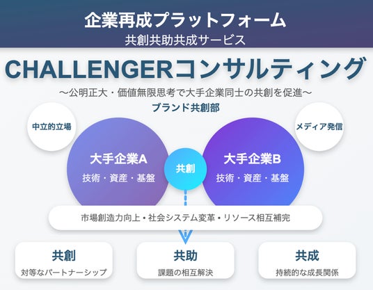 企業再成プラットフォーム実現のための共創共助共成サービス「CHALLENGERコンサルティング」提供開始のお知らせ~公明正大・価値無限思考で大手企業同士の共創を促進~「ブランド共創部」担当部長浜崎正己
