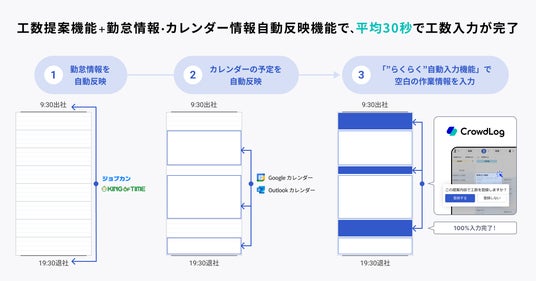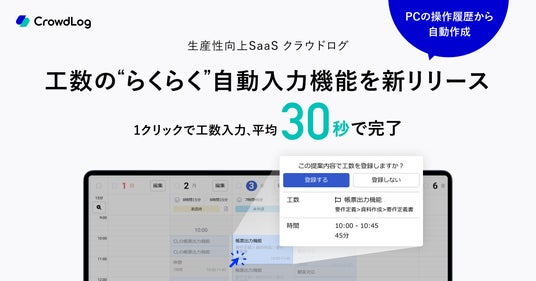 企業と個人をつなぐオンライン人材マッチング事業を展開する株式会社クラウドワークス(本社:東京都渋谷区 代表取締役社長 兼 CEO:吉田 浩一郎 以下「当社」)が運営する生産性向上SaaS「クラウドログ」は、パソコン(以下、PC)の操作履歴をもとに工数を提案・自動入力する「”らくらく”自動入力機能」(以下、本機能)をリリースいたしました。
