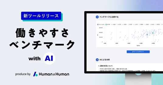 フリーランス業界最大級プラットフォーム(登録ワーカー680万人・登録企業100万社)を基盤に、IT人材&コンサルティングサービスを提供する株式会社クラウドワークス(本社:東京都渋谷区 代表取締役社長 兼 CEO:吉田 浩一郎 以下「当社」)は、当社が提供する人的資本経営SaaS「Human & Human」において、企業の所在地・業界水準と自社の残業時間・給与を比較し、AIが課題と解決策を提案する「働きやすさベンチマーク with AI」(以下、「新ツール」)を提供開始いたしました。