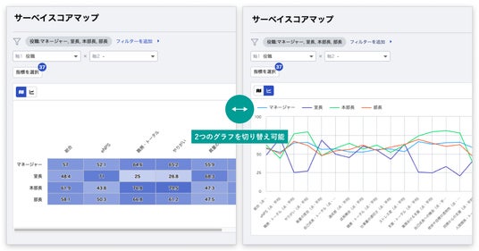エンゲージメントとストレスチェックの相関を分析するなど、サービスに依存しない自由なデータ活用ができます。
