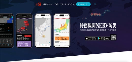 「特務機関NERV防災アプリ」Webサイトトップページ