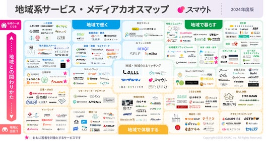 株式会社カヤック(本社:神奈川県鎌倉市、代表取締役CEO:柳澤大輔、東証グロース3904)は、自社が運営する地域の仕事・暮らし・体験マッチングサービス「スマウト」の監修のもと、地域の関係人口から移住・定住に関する全国のサービス・メディアを一つにまとめた「地域系サービス・メディアカオスマップ2024年度版」を、スマウトの特集ページ(https://lab.smout.jp/news/about-map2024)にて、2025年4月21日に公開しました。