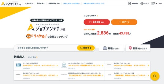 「ジョブアンテナ 沖縄」Webサイトトップページ