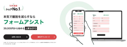 フォームアシストは業界シェアNo.1(※)のEFO(入力フォーム最適化)ツールです。