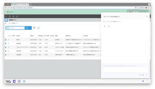 kintoneアプリを自動生成します。AIアシスタントに音声やテキストで作成したいアプリを指示をすることで、AIアシスタントがアプリのフィールドを提案し、自動生成します。