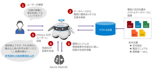 想定しているユースケースとしては、就業規則や出張規定などの社内規定、取扱説明書やクイックガイドなどの製品マニュアル、提案書や事例集などの営業用資料などの活用で、生成AIが学習していない企業独自のルールや特定の製品に関する詳細な情報について、mitoco AIが回答できるようになります。