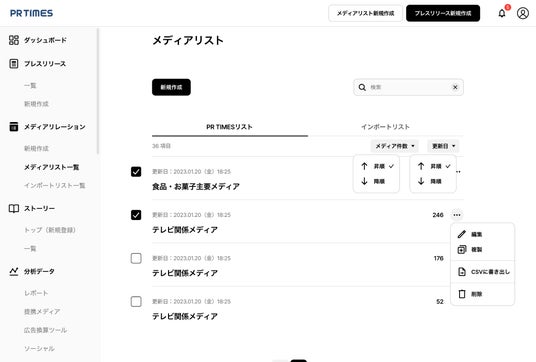 株式会社PR TIMES(東京都港区、代表取締役:山口拓己、東証プライム:3922)は、2024年12月5日(木)にプレスリリース配信サービス「PR TIMES」の管理画面におけるメディアリスト機能をリニューアルいたします。