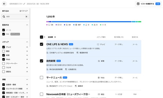 新着メディアを優先表示&直感的な絞り込みで発表情報に合ったメディアを選定