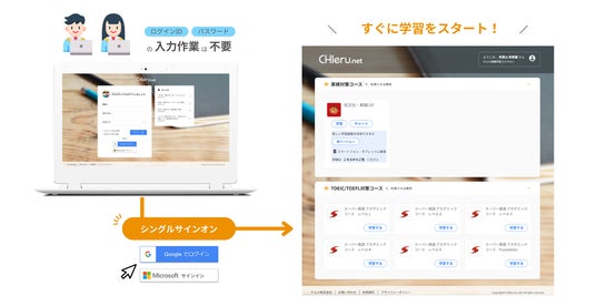 こうした状況を踏まえ、安心・安全な利用環境と授業運営の効率化を図るため『CHIeru.net』でのシングルサインオン対応を実行いたしました。