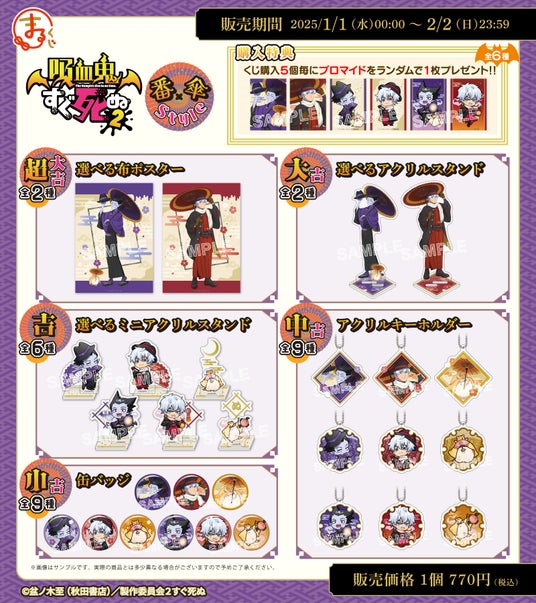 株式会社エディア(本社:東京都千代田区、代表取締役社長:賀島 義成)の子会社、株式会社ティームエンタテインメント(本社:東京都千代田区、代表取締役社長:賀島 義成 以下:ティームエンタテインメント)は、2025年1月1日(水) 00:00よりアニメ『吸血鬼すぐ死ぬ2』の新規描き下ろしグッズを、インターネットで購入できる抽選くじサービス『まるくじ』にて販売開始したことをお知らせいたします。