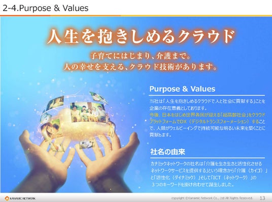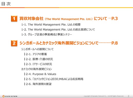 当社では『「人生を抱きしめるクラウド」で人と社会に貢献する』というビジョンを前提に「事業コンテンツ」、「事業エリア」、「事業ツール」の補強・拡大を行うため、M&Aを積極的に推進しており、TWM社の株式取得は、当社の成長戦略『カナミックビジョン2030』の「Phase4:海外展開」への本格的な着手ともなります。当社グループにおける新規事業の創出・既存事業の拡大とともに、M&Aの推進を通じてビジョンの実現と継続的な成長を図ってまいります。