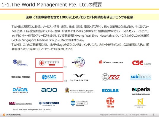 TWM社のバックエンドシステムと、当社グループが保有するフロントエンドシステムの開発力を組み合わせることで、TWM社の顧客をはじめとするシンガポールの企業に、総合的なITシステムを提供することが可能となります。また、TWM社の顧客のなかには、介護事業や医療クリニックを手掛けている企業も複数あり、TWM社の顧客群は、当社がヘルスケア・ヘルステック企業として更なる付加価値の高いサービスを提供する上で大きな推進力になると判断しております。またシンガポールを拠点にASEAN諸国をはじめとした東南アジアへの展開も見込んでおります。