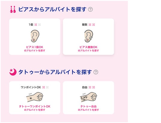 「ピアス/タトゥーからアルバイトを探す」機能について