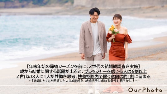 【年末年始の帰省シーズンを前に、Z世代の結婚観調査を実施】親から結婚に関する話題が出ると、プレッシャーを感じる人は6割以上 3人に1人が共働き思考、扶養控除内で働く意向は約1割に留まる