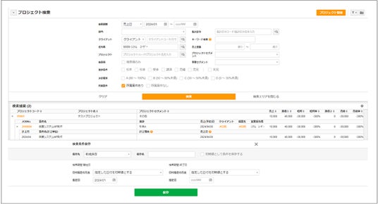 複数案件を集約しプロジェクト全体の売上・原価・利益を可視化するプロジェクト検索画面のデザインが刷新されたことで、当該プロジェクト全体の損益が一目で確認しやすくなりました。
