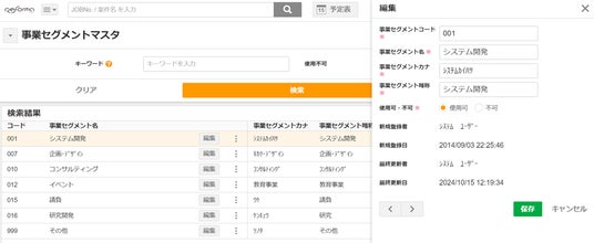※画像は案件をセグメント分けする「事業セグメントマスタ」のもの