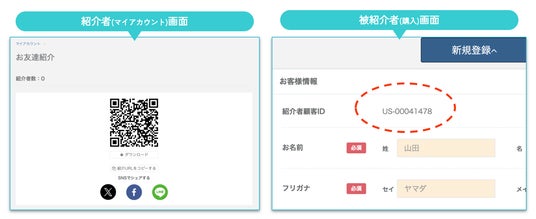 既存顧客に紹介用のURL及びQRコードを提供することで、広告費をかけず良質な顧客獲得が可能になります。日別/月別の紹介数と紹介者別の状況確認が可能で、紹介者と被紹介者の双方に自動で特典を付与することが可能です。