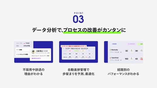 2021年9月には、従業員の定着と活躍を支援するサービス群「Engagement Suite」の提供も開始しています。また2024年11月には、採用管理システム「Wantedly Hire」をリリースしました。