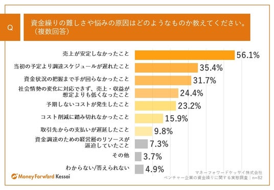 4. 資金繰りの難しさや悩みの原因、56.1%が「売上が安定しなかったこと」と回答