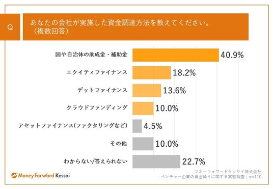 6. スタートアップの資金調達方法、40.9%が「国や自治体の助成金・補助金」と回答