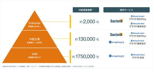 また、これまでマネーフォワードのグループ会社として、中小・中堅企業を中心に経営管理プラットフォーム『Manageboard』を提供してきたナレッジラボとの株式交換を行い、ナレッジラボをMFCCの100%グループ会社化する予定です※2。これにより、経営管理領域において中小企業からエンタープライズ企業まで全てに対応する幅広いサービスラインナップを揃えるとともに、コンサルティング事業を強化することで事業拡大を行います。