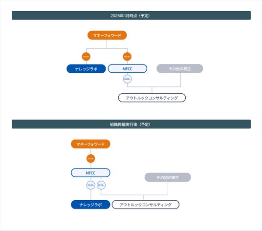 ※2 上記「組織再編実行後(予定)」のとおり、当社はナレッジラボとの株式交換の効力発生後、ナレッジラボのMFCC完全子会社化に向けて組織再編を予定しています。その具体的な時期、方法及び条件については今後詳細を決定する予定です。