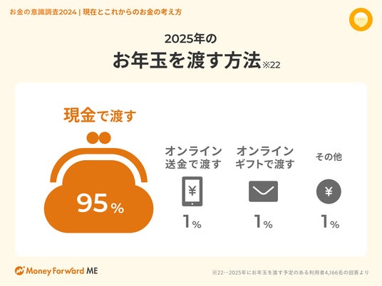 - 2025年のお年玉の形式は、キャッシュレス化が進むなかでも「現金で渡す」が首位に。
