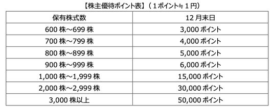 繰越条件:ポイントは12月末日において株主名簿に同一株主番号で連続2回以上記載され、かつ600