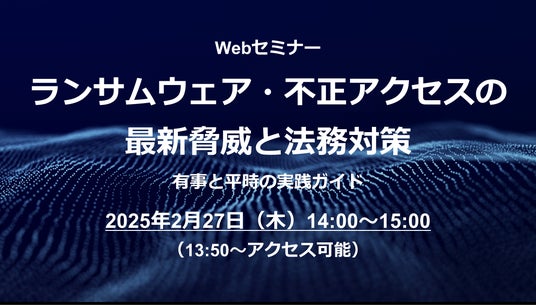 情報漏えい発生時の対応、しっかり理解していますか?Webセミナー「ランサムウェア・不正アクセスの最新脅威と法務対策」を2/27(木)に開催